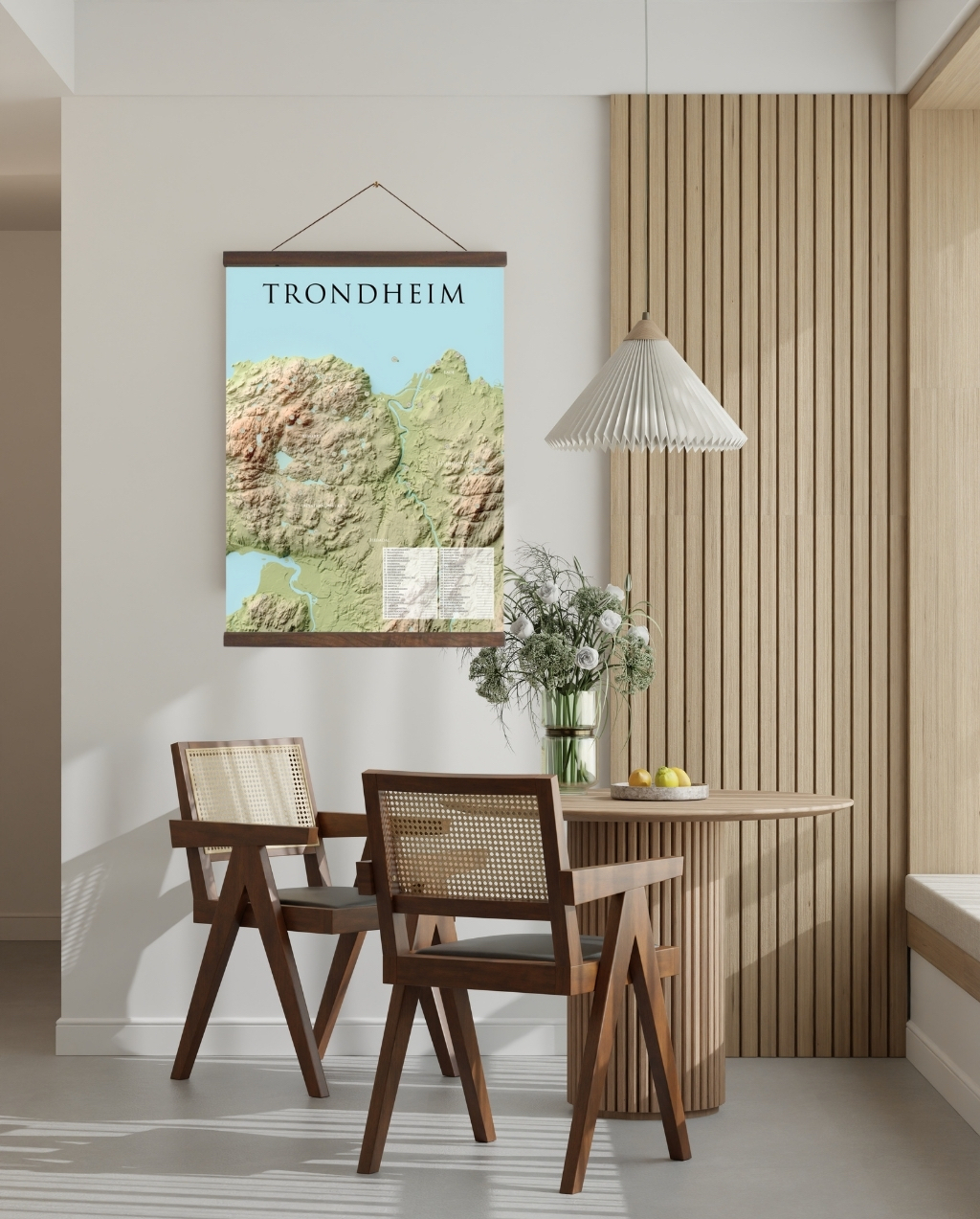 Dette inspirerende kartet henger på veggen hjemme og inviterer deg til å oppdage femti ulike plasser i dagsturlengde fra Trondheim. Kartet kommer også med 50 nummererte klistremerker i ulike farger laget for å markere hvor du har vært, og et felt for å skrive datoen du var der.
